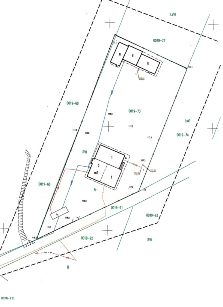 Działka o powierzchni ok. 3700 m², w kształcie trapezu prostokątnego, w całości ogrodzona, harmonijnie zagospodarowana.